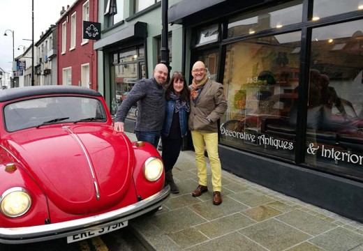 Comber is a town rich in history and treasure. Now the town is being put on the treasure hunt map by BBC programme ‘Antiques Road Trip’. During filming for the new series, to be broadcast later in the year, antiques expert David Harper, driving a classic red VW Beetle, recently paid a visit to Comber where he picked up an item for auction from the local antiques emporium!