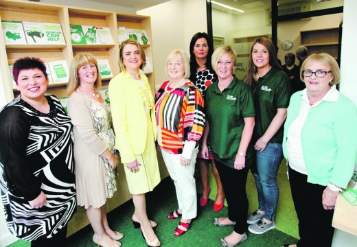 Barbara Bailie (centre) with Roberta Brownlee, Chair of Southern Health & Social Care Trust, Macmillan volunteers and Information Centre and Trust staff.