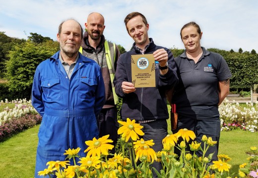 Proud members of Ards and North Down Borough Council’s Parks team pictured with their winning plaque in Bangor Castle Walled Garden.