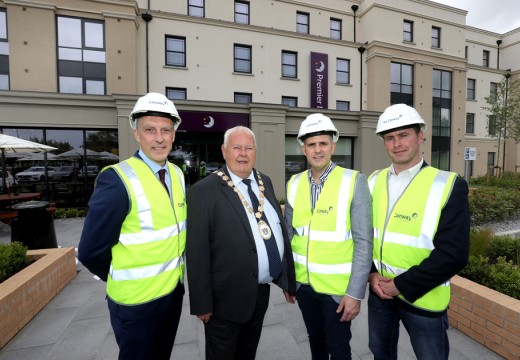 At the new Premier Inn Hotel in Bangor, from left to right; Des Taggart, property director, Conway Group, the Mayor of Ards and North Down, Alderman Bill Keery; Kevin McGurgan, construction director, Conway Group and Padraig Callaghan, site manager, Conway Group.